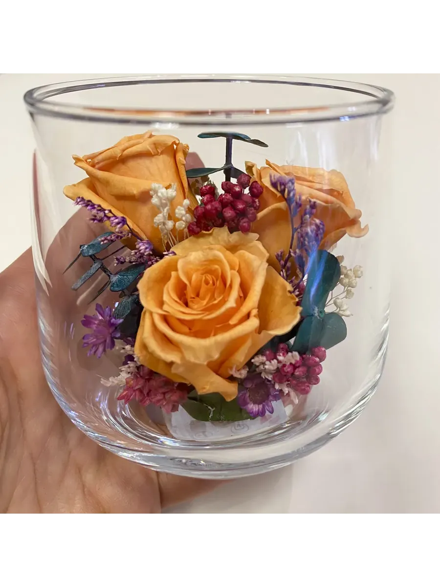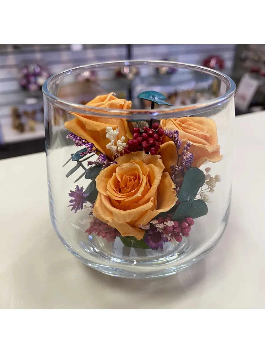 Стекло не только подчеркнет изящество цветов благодаря своей уникальной способности оптического увеличения, но и придаст всей композиции элегантный и утонченный вид. Цветы в стекле, способны хранить свои натуральные свойства несколько лет и станут самым лучшим подарком для Вашей...