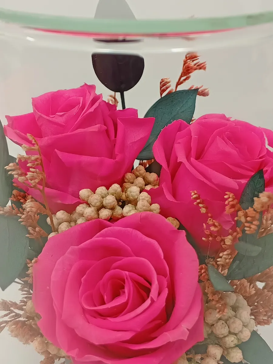 Стекло не только подчеркнет изящество цветов благодаря своей уникальной способности оптического увеличения, но и придаст всей композиции элегантный и утонченный вид.