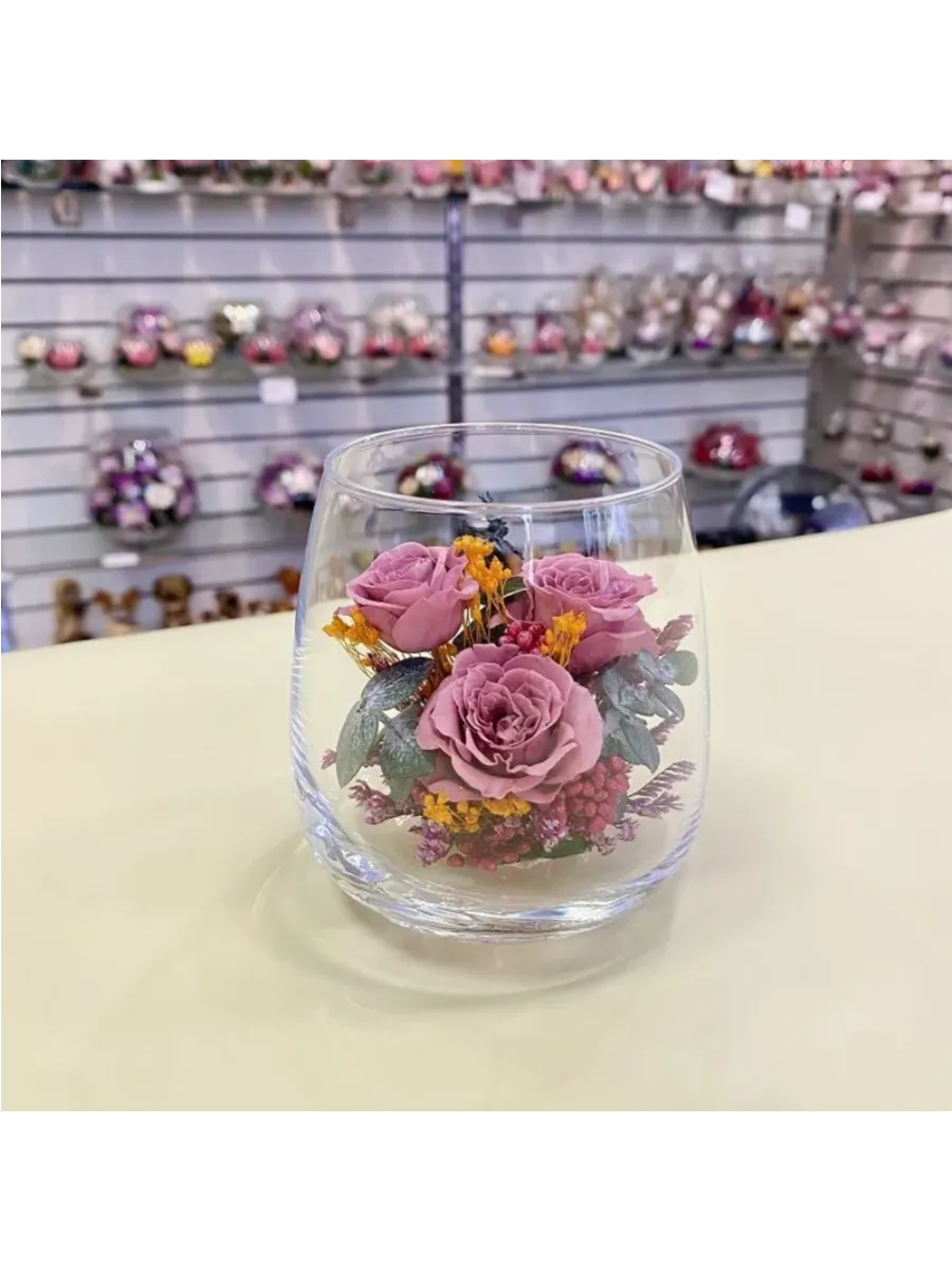Стекло не только подчеркнет изящество цветов благодаря своей уникальной способности оптического увеличения, но и придаст всей композиции элегантный и утонченный вид.
