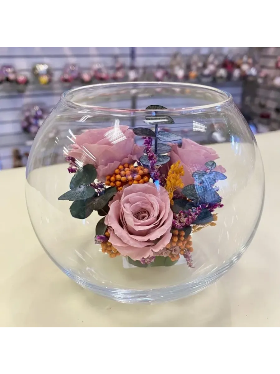 Стекло не только подчеркнет изящество цветов благодаря своей уникальной способности оптического увеличения, но и придаст всей композиции элегантный и утонченный вид. Цветы в стекле, способны хранить свои натуральные свойства несколько лет и станут самым лучшим подарком для Вашей...