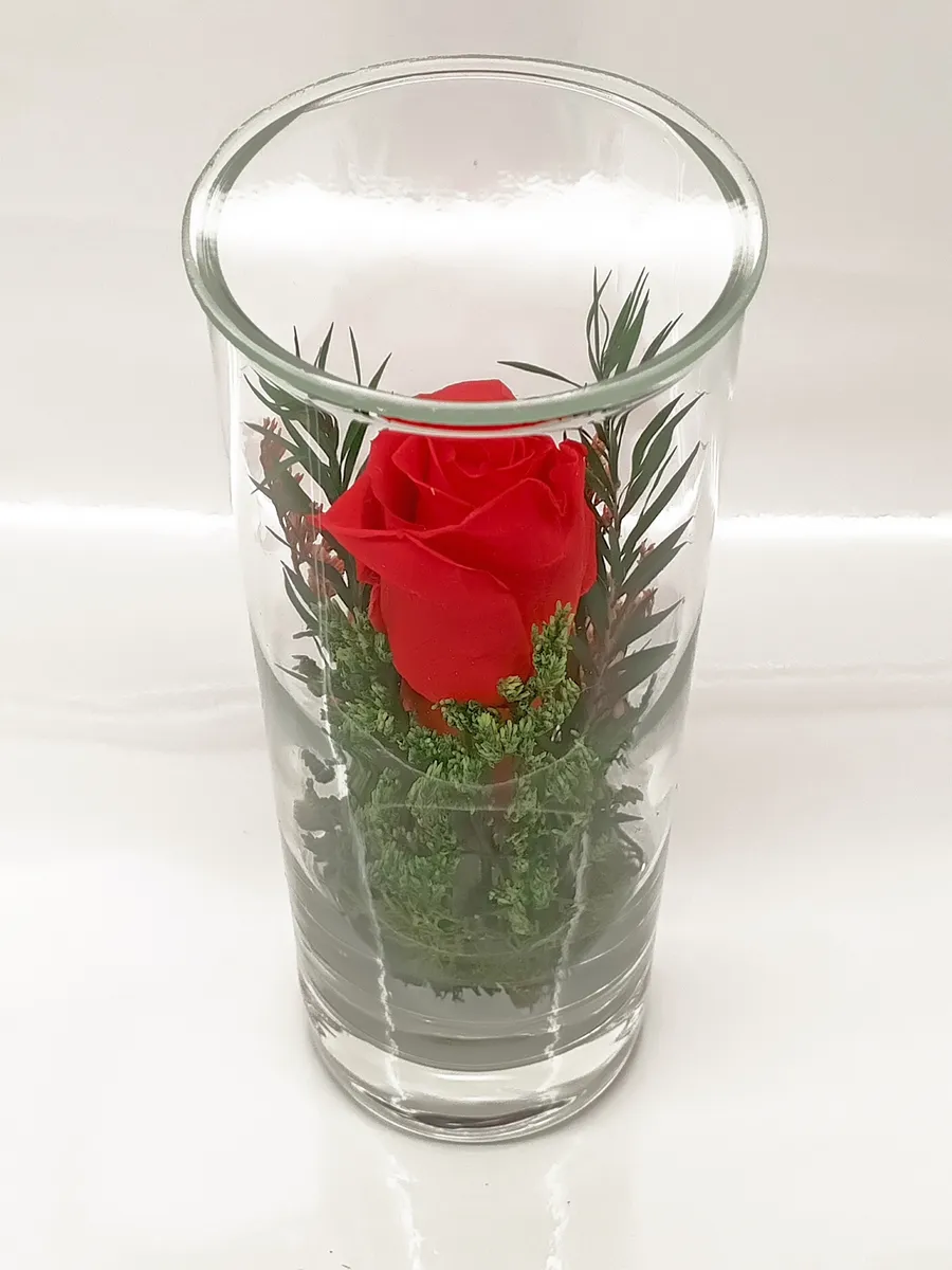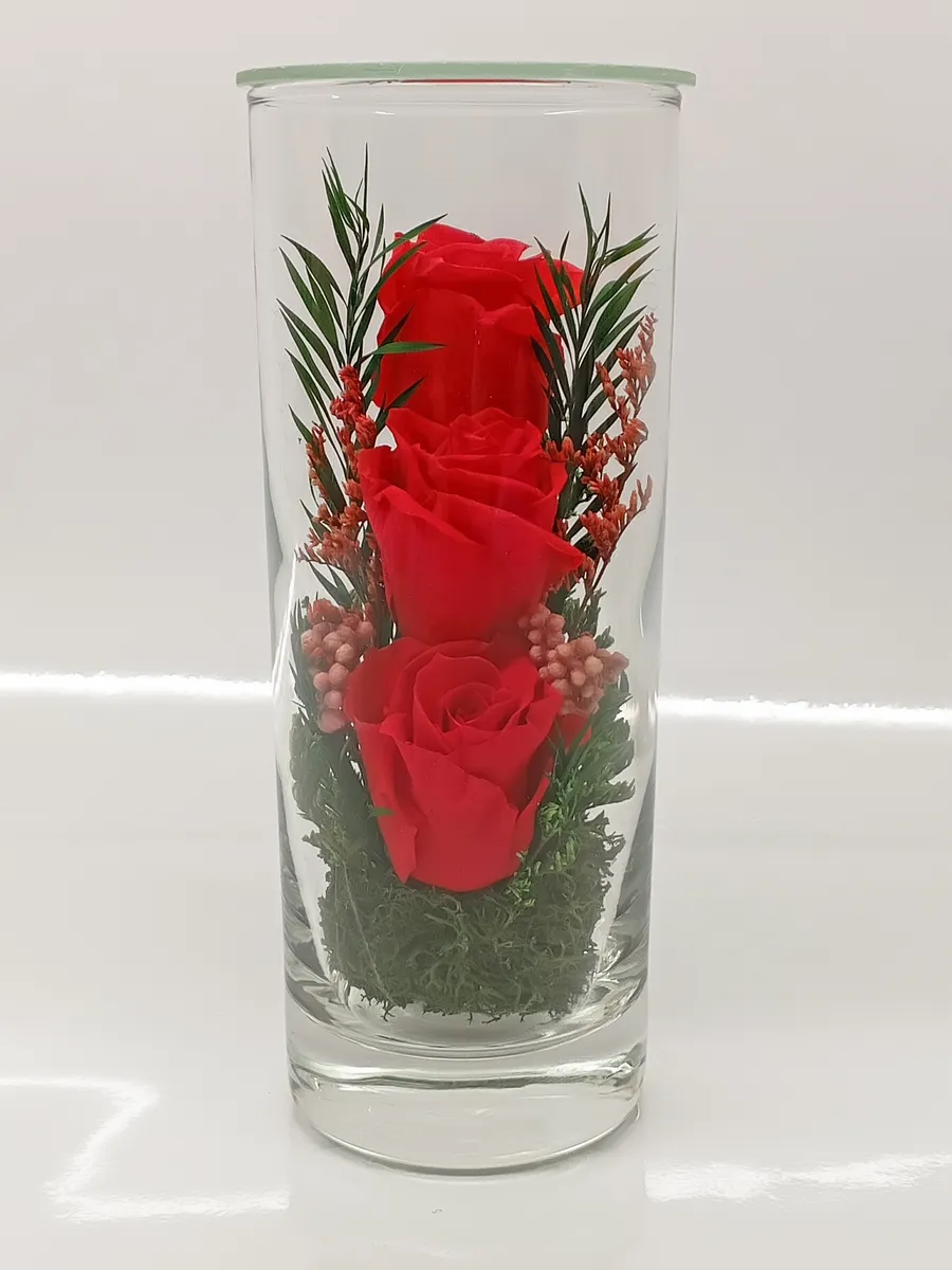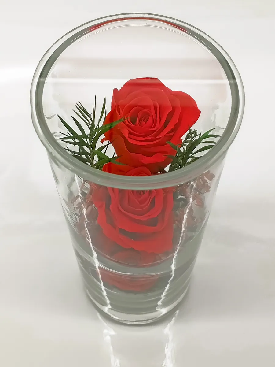 Стекло не только подчеркнет изящество цветов благодаря своей уникальной способности оптического увеличения, но и придаст всей композиции элегантный и утонченный вид.