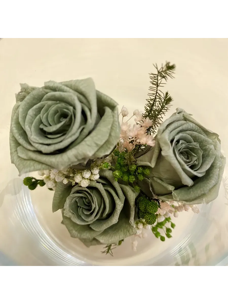 Композиции из натуральных цветов, в стеклянных герметичных вазах, вакуум.
