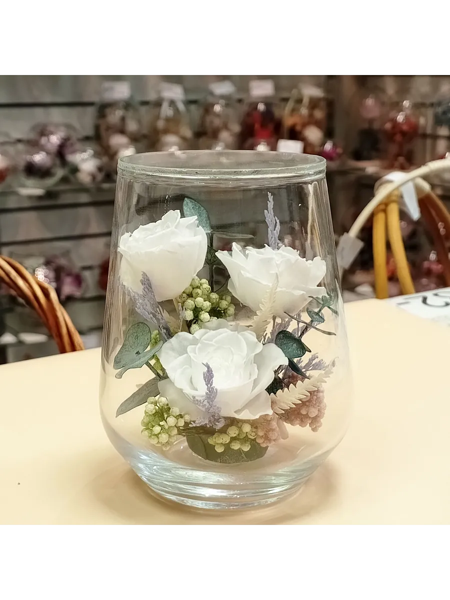 Стекло не только подчеркнет изящество цветов благодаря своей уникальной способности оптического увеличения, но и придаст всей композиции элегантный и утонченный вид. Цветы в стекле, способны хранить свои натуральные свойства несколько лет и станут самым лучшим подарком для Вашей...