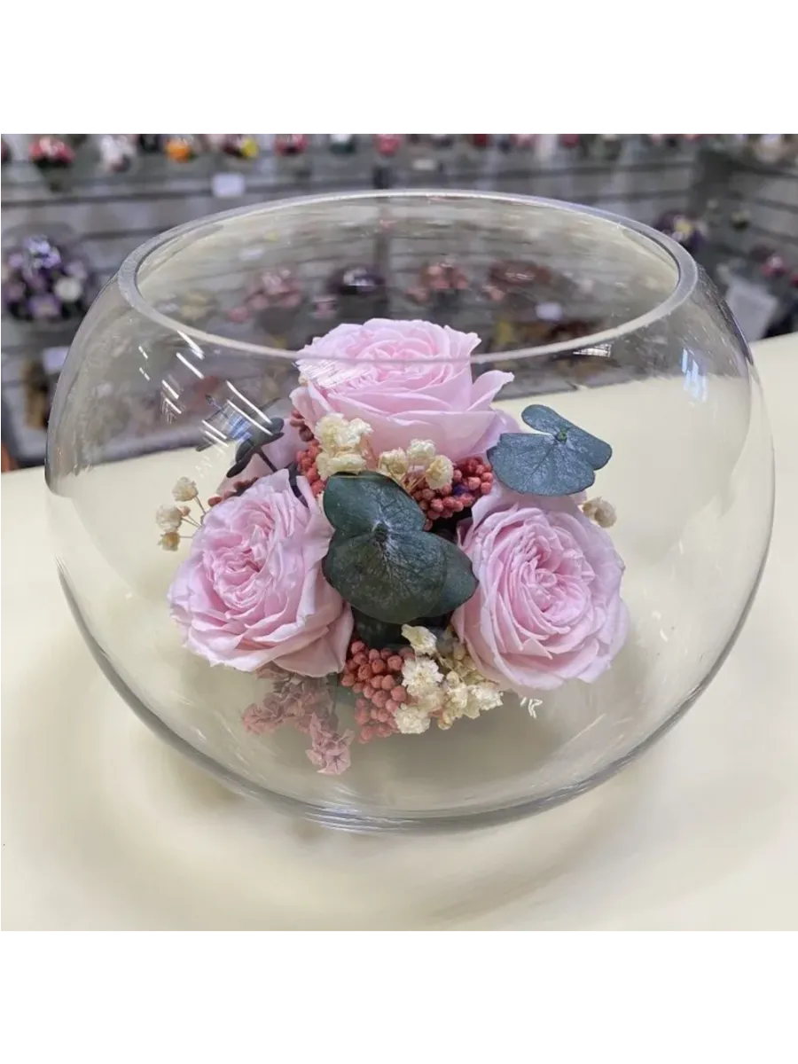 Стекло не только подчеркнет изящество цветов благодаря своей уникальной способности оптического увеличения, но и придаст всей композиции элегантный и утонченный вид. Цветы в стекле, способны хранить свои натуральные свойства несколько лет и станут самым лучшим подарком для Вашей...