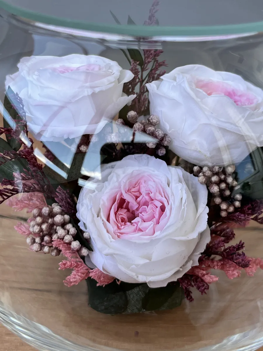 Композиции из натуральных цветов, в стеклянных герметичных вазах, вакуум