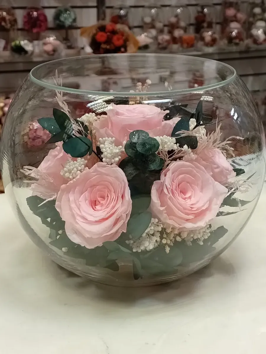Стекло не только подчеркнет изящество цветов благодаря своей уникальной способности оптического увеличения, но и придаст всей композиции элегантный и утонченный вид. Цветы в стекле, способны хранить свои натуральные свойства несколько лет и станут самым лучшим подарком для Вашей...