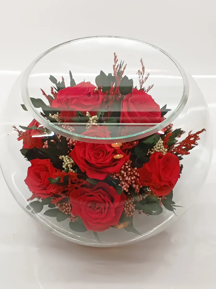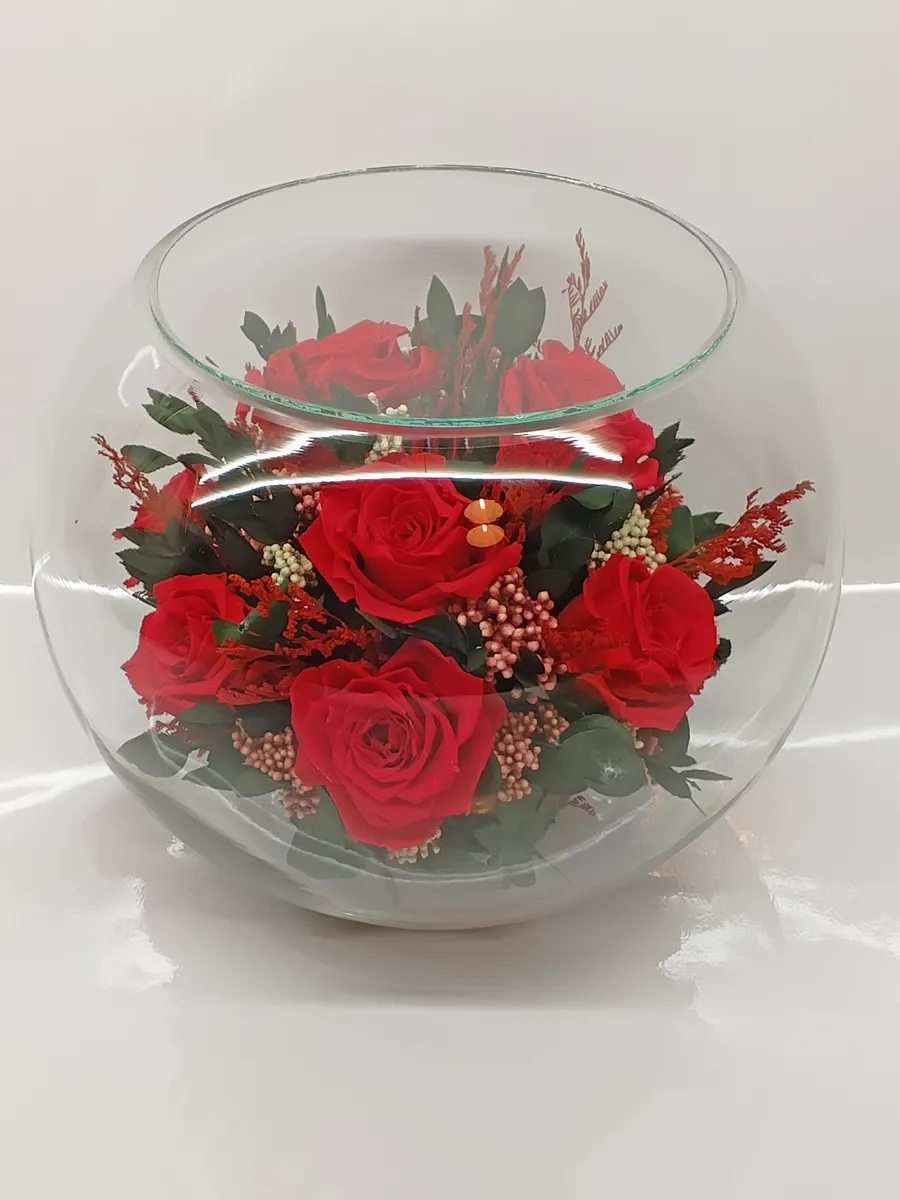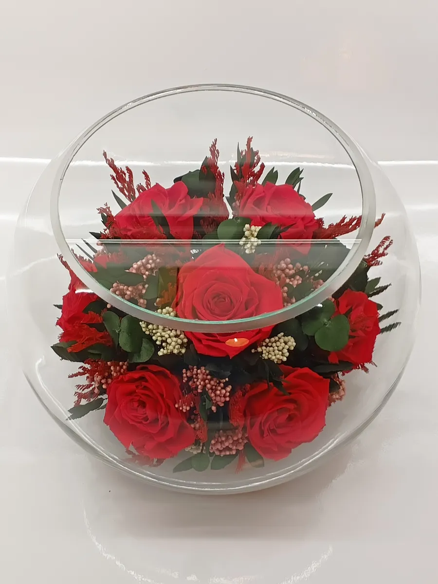 Стекло не только подчеркнет изящество цветов благодаря своей уникальной способности оптического увеличения, но и придаст всей композиции элегантный и утонченный вид. Цветы в стекле, способны хранить свои натуральные свойства несколько лет и станут самым лучшим подарком для Вашей...