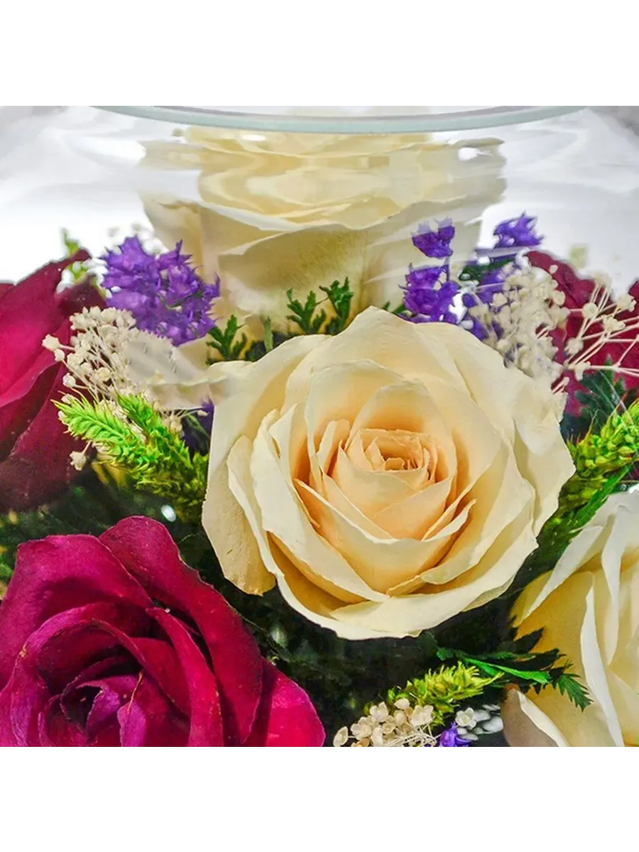 Стекло не только подчеркнет изящество цветов благодаря своей уникальной способности оптического увеличения, но и придаст всей композиции элегантный и утонченный вид. Цветы в стекле, способны хранить свои натуральные свойства несколько лет и станут самым лучшим подарком для Вашей...