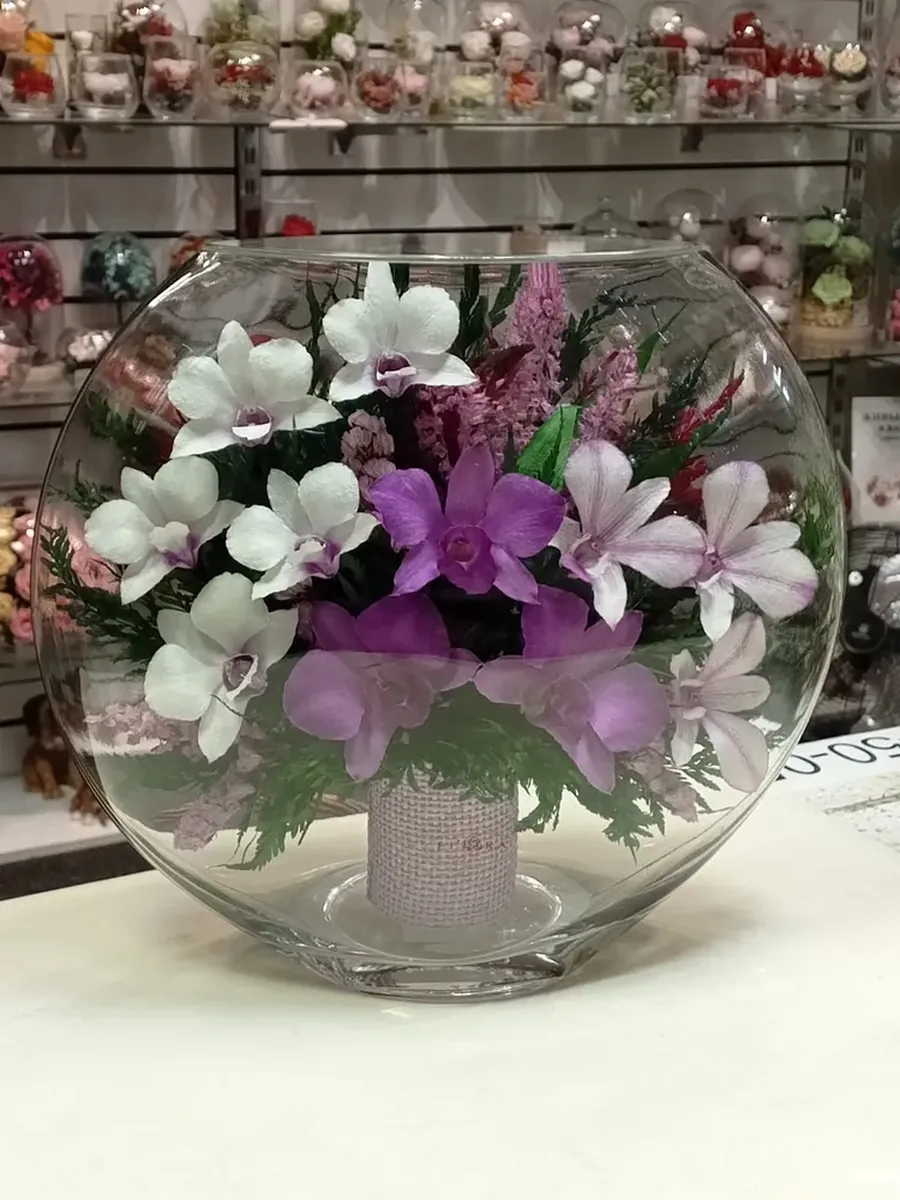 Цветы в стекле представляют собой великолепное сочетание композиций из натуральных цветов и замечательным образом выполненные элементы из стекла, имеющие декоративную форму. Натуральные невянущие цветы в стекле, такие как изящные и благородные розы, композиции из экзотических и таинственных орхидей, станут не просто замечательным настольным украшением, но способны преобразить любой интерьер квартиры или офиса. Стекло не только подчеркнет изящество цветов благодаря своей уникальной способности оптического увеличения, но и придаст всей композиции элегантный и утонченный вид. Цветы в стекле, способны хранить свои натуральные свойства несколько лет и станут самым лучшим подарком для Вашей...