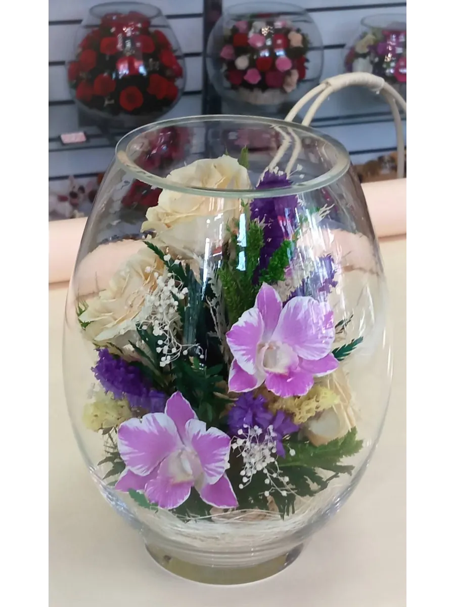 Цветы в стекле представляют собой великолепное сочетание композиций из натуральных цветов и замечательным образом выполненные элементы из стекла, имеющие декоративную форму. Натуральные невянущие цветы в стекле, такие как изящные и благородные розы, композиции из экзотических и таинственных орхидей, станут не просто замечательным настольным украшением, но способны преобразить любой интерьер квартиры или офиса. Стекло не только подчеркнет изящество цветов благодаря своей уникальной способности оптического увеличения, но и придаст всей композиции элегантный и утонченный вид. Цветы в стекле, способны хранить свои натуральные свойства несколько лет и станут самым лучшим подарком для Вашей...