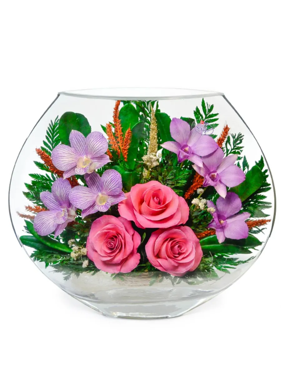 Цветы в стекле представляют собой великолепное сочетание композиций из натуральных цветов и замечательным образом выполненные элементы из стекла, имеющие декоративную форму. Натуральные невянущие цветы в стекле, такие как изящные и благородные розы, композиции из экзотических и таинственных орхидей, станут не просто замечательным настольным украшением, но способны преобразить любой интерьер квартиры или офиса. Стекло не только подчеркнет изящество цветов благодаря своей уникальной способности оптического увеличения, но и придаст всей композиции элегантный и утонченный вид. Цветы в стекле, способны хранить свои натуральные свойства несколько лет и станут самым лучшим подарком для Вашей...
