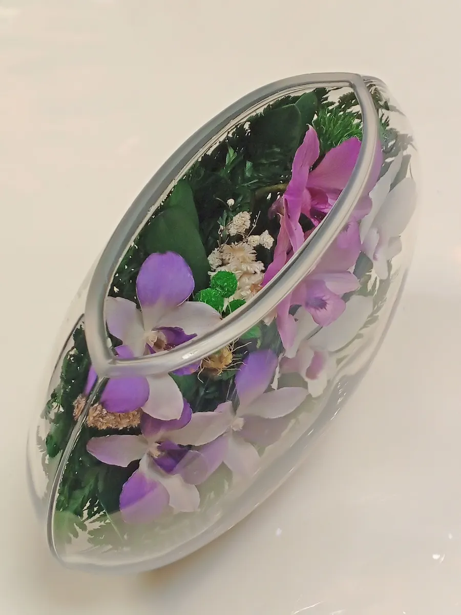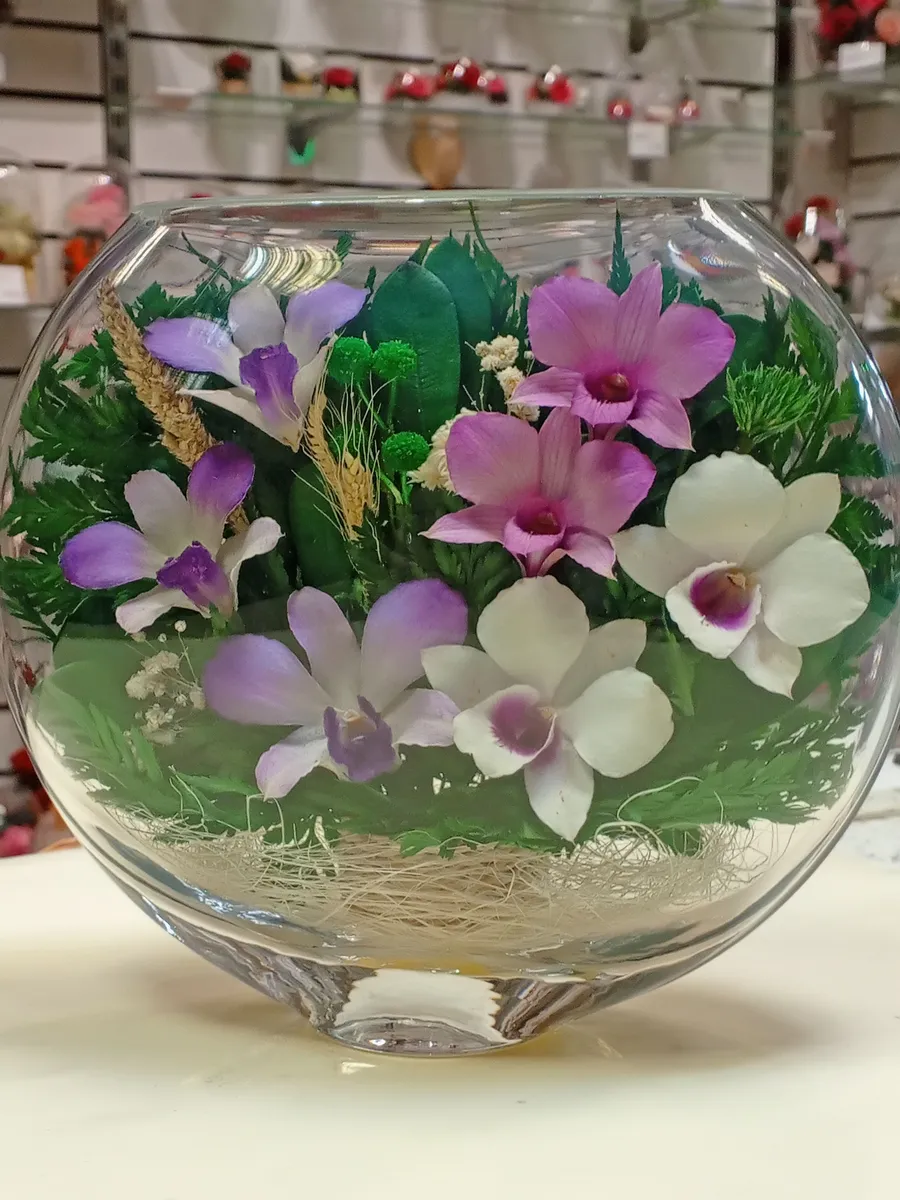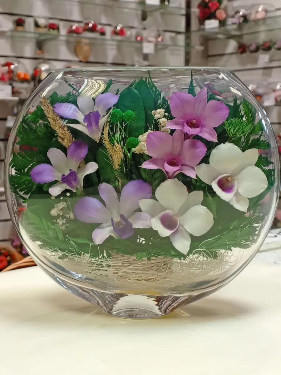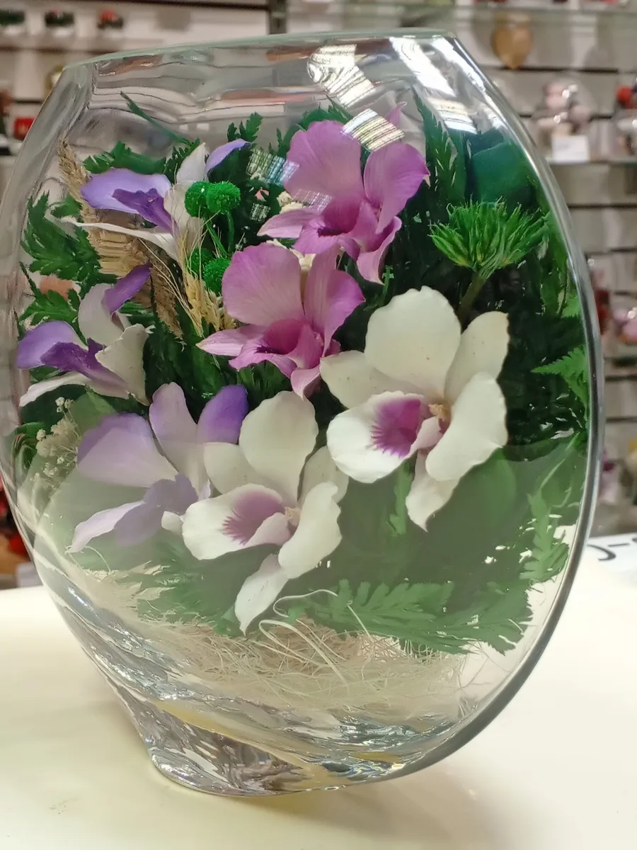 Цветы в стекле представляют собой великолепное сочетание композиций из натуральных цветов и замечательным образом выполненные элементы из стекла, имеющие декоративную форму. Натуральные невянущие цветы в стекле, такие как изящные и благородные розы, композиции из экзотических и таинственных орхидей, станут не просто замечательным настольным украшением, но способны преобразить любой интерьер квартиры или офиса. Стекло не только подчеркнет изящество цветов благодаря своей уникальной способности оптического увеличения, но и придаст всей композиции элегантный и утонченный вид. Цветы в стекле, способны хранить свои натуральные свойства несколько лет и станут самым лучшим подарком для Вашей...