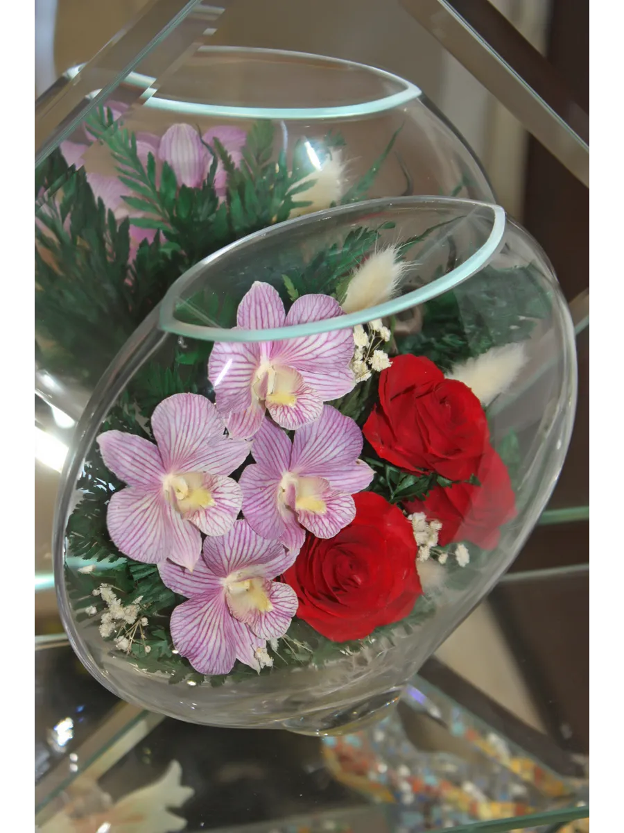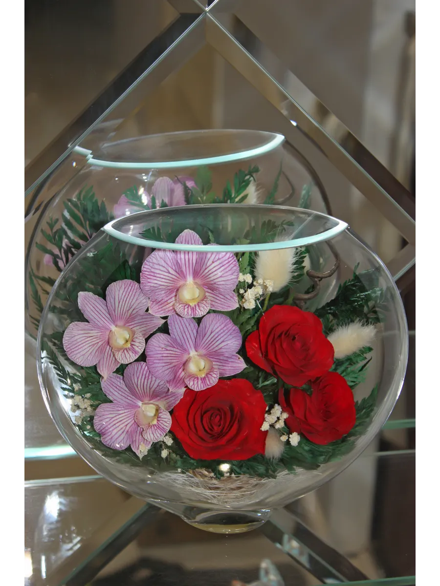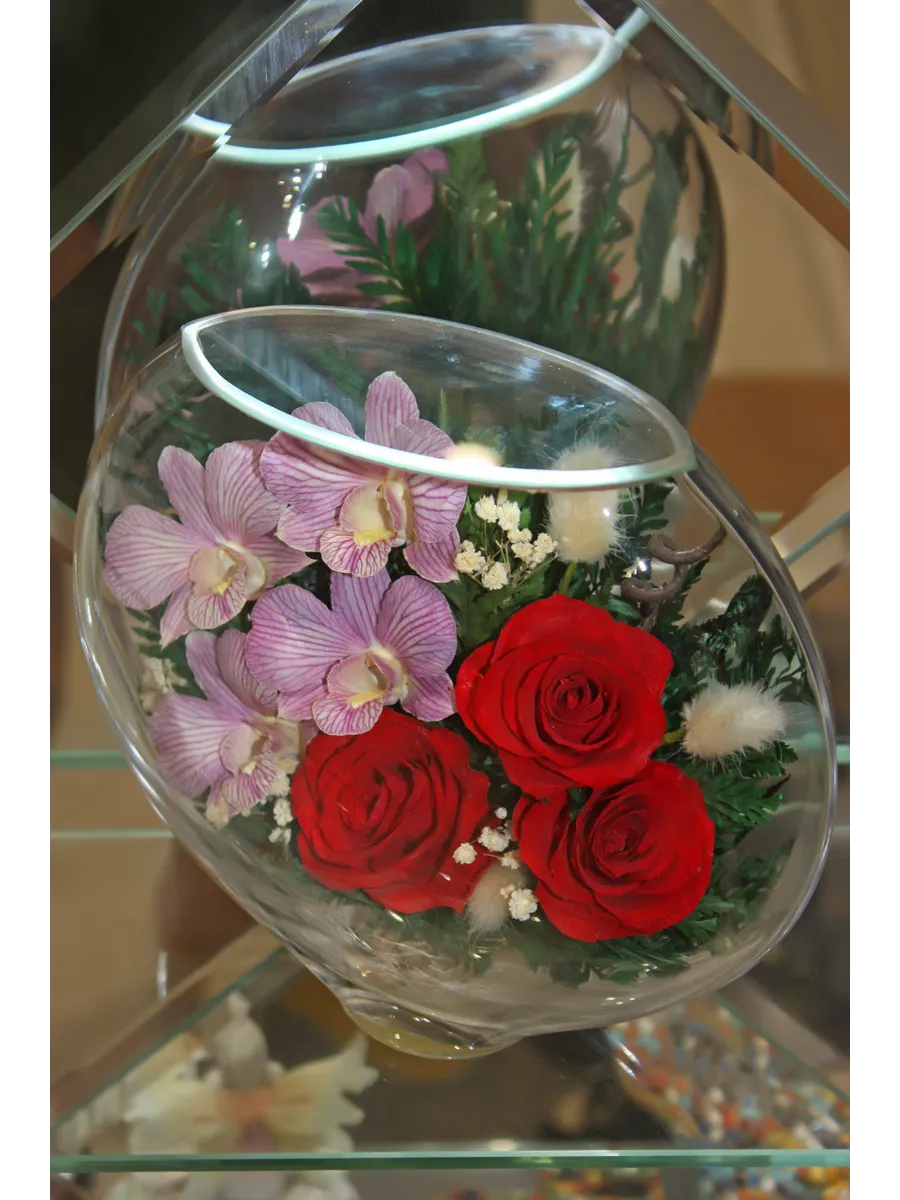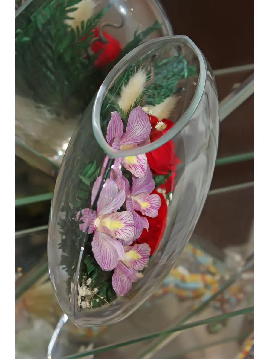 Цветы в стекле представляют собой великолепное сочетание композиций из натуральных цветов и замечательным образом выполненные элементы из стекла, имеющие декоративную форму. Натуральные невянущие цветы в стекле, такие как изящные и благородные розы, композиции из экзотических и таинственных орхидей, станут не просто замечательным настольным украшением, но способны преобразить любой интерьер квартиры или офиса. Стекло не только подчеркнет изящество цветов благодаря своей уникальной способности оптического увеличения, но и придаст всей композиции элегантный и утонченный вид. Цветы в стекле, способны хранить свои натуральные свойства несколько лет и станут самым лучшим подарком для Вашей...