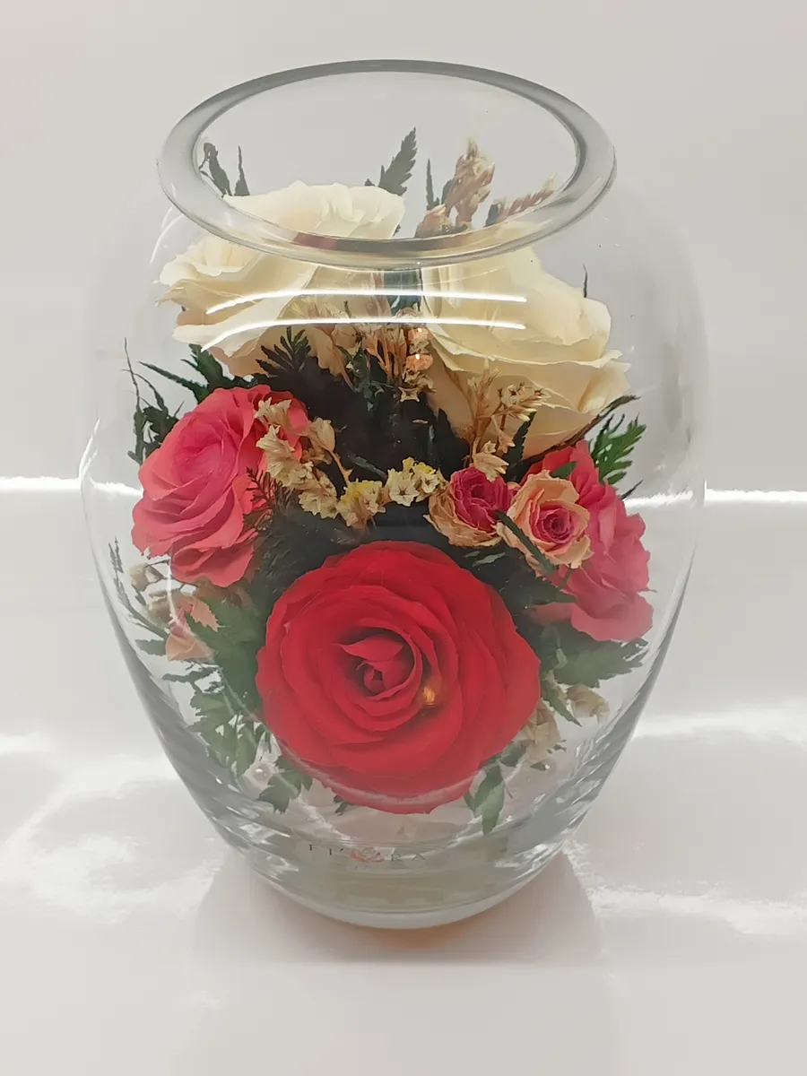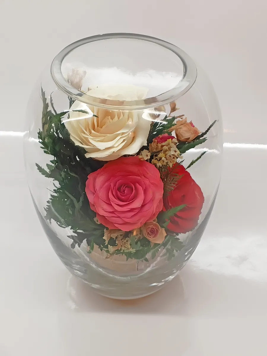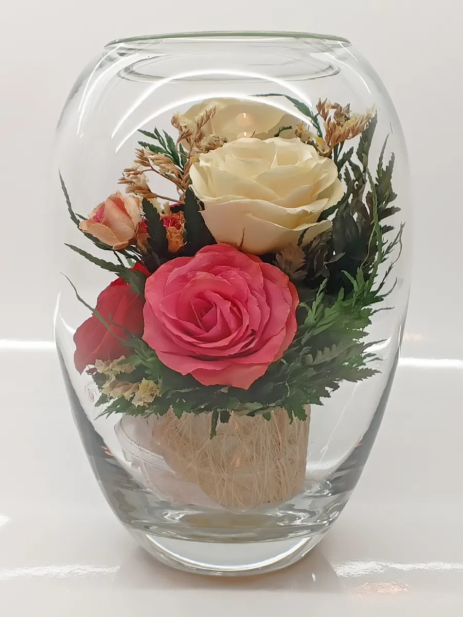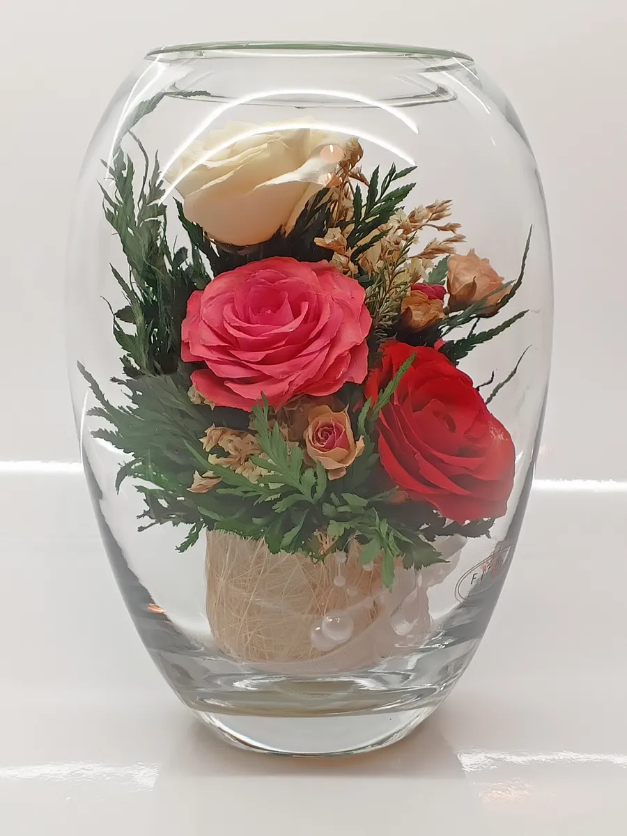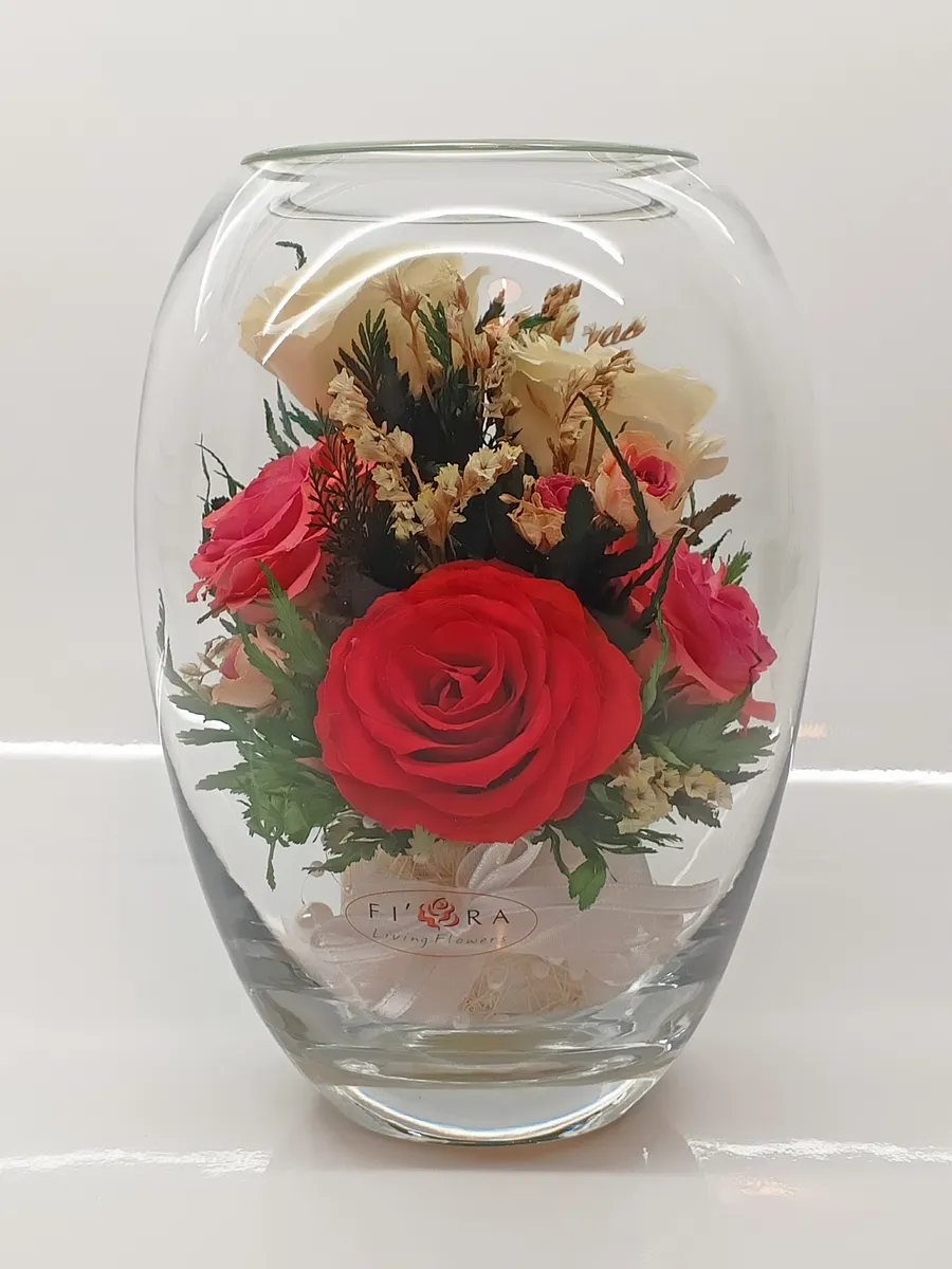 Цветы в стекле представляют собой великолепное сочетание композиций из натуральных цветов и замечательным образом выполненные элементы из стекла, имеющие декоративную форму. Натуральные невянущие цветы в стекле, такие как изящные и благородные розы, композиции из экзотических и таинственных орхидей, станут не просто замечательным настольным украшением, но способны преобразить любой интерьер квартиры или офиса. Стекло не только подчеркнет изящество цветов благодаря своей уникальной способности оптического увеличения, но и придаст всей композиции элегантный и утонченный вид. Цветы в стекле, способны хранить свои натуральные свойства несколько лет и станут самым лучшим подарком для Вашей...