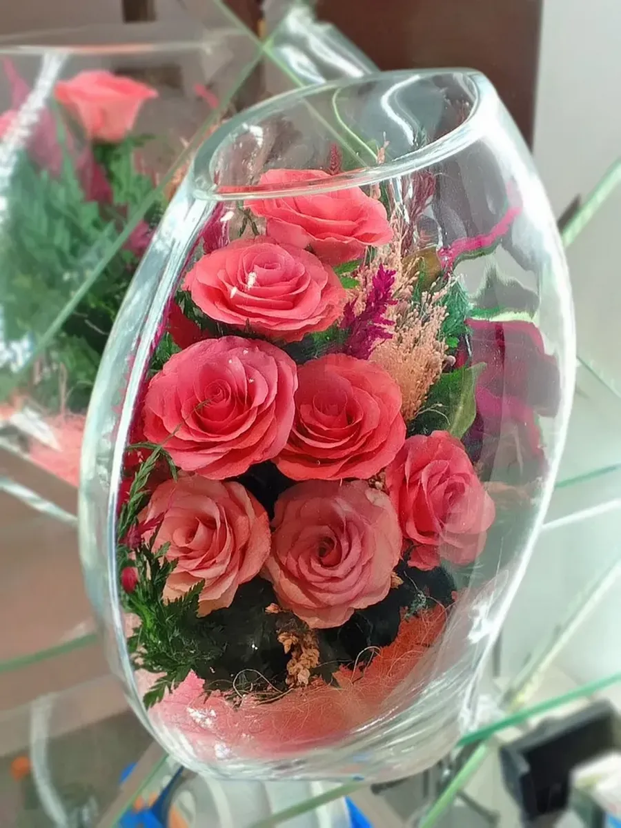Цветы в стекле представляют собой великолепное сочетание композиций из натуральных цветов и замечательным образом выполненные элементы из стекла, имеющие декоративную форму. Натуральные невянущие цветы в стекле, такие как изящные и благородные розы, композиции из экзотических и таинственных орхидей, станут не просто замечательным настольным украшением, но способны преобразить любой интерьер квартиры или офиса. Стекло не только подчеркнет изящество цветов благодаря своей уникальной способности оптического увеличения, но и придаст всей композиции элегантный и утонченный вид. Цветы в стекле, способны хранить свои натуральные свойства несколько лет и станут самым лучшим подарком для Вашей...