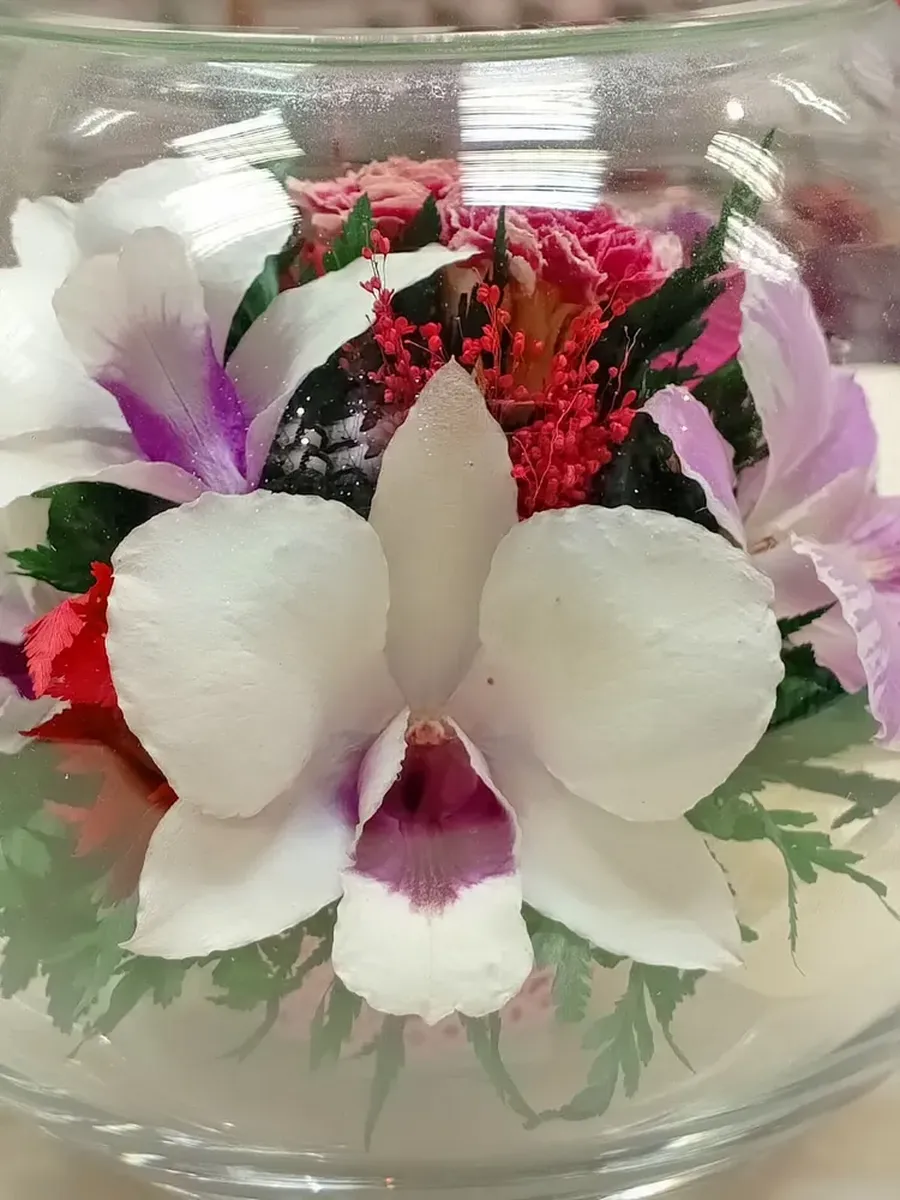 Цветы в стекле представляют собой великолепное сочетание композиций из натуральных цветов и замечательным образом выполненные элементы из стекла, имеющие декоративную форму. Натуральные невянущие цветы в стекле, такие как изящные и благородные розы, композиции из экзотических и таинственных орхидей, станут не просто замечательным настольным украшением, но способны преобразить любой интерьер квартиры или офиса. Стекло не только подчеркнет изящество цветов благодаря своей уникальной способности оптического увеличения, но и придаст всей композиции элегантный и утонченный вид. Цветы в стекле, способны хранить свои натуральные свойства несколько лет и станут самым лучшим подарком для Вашей...
