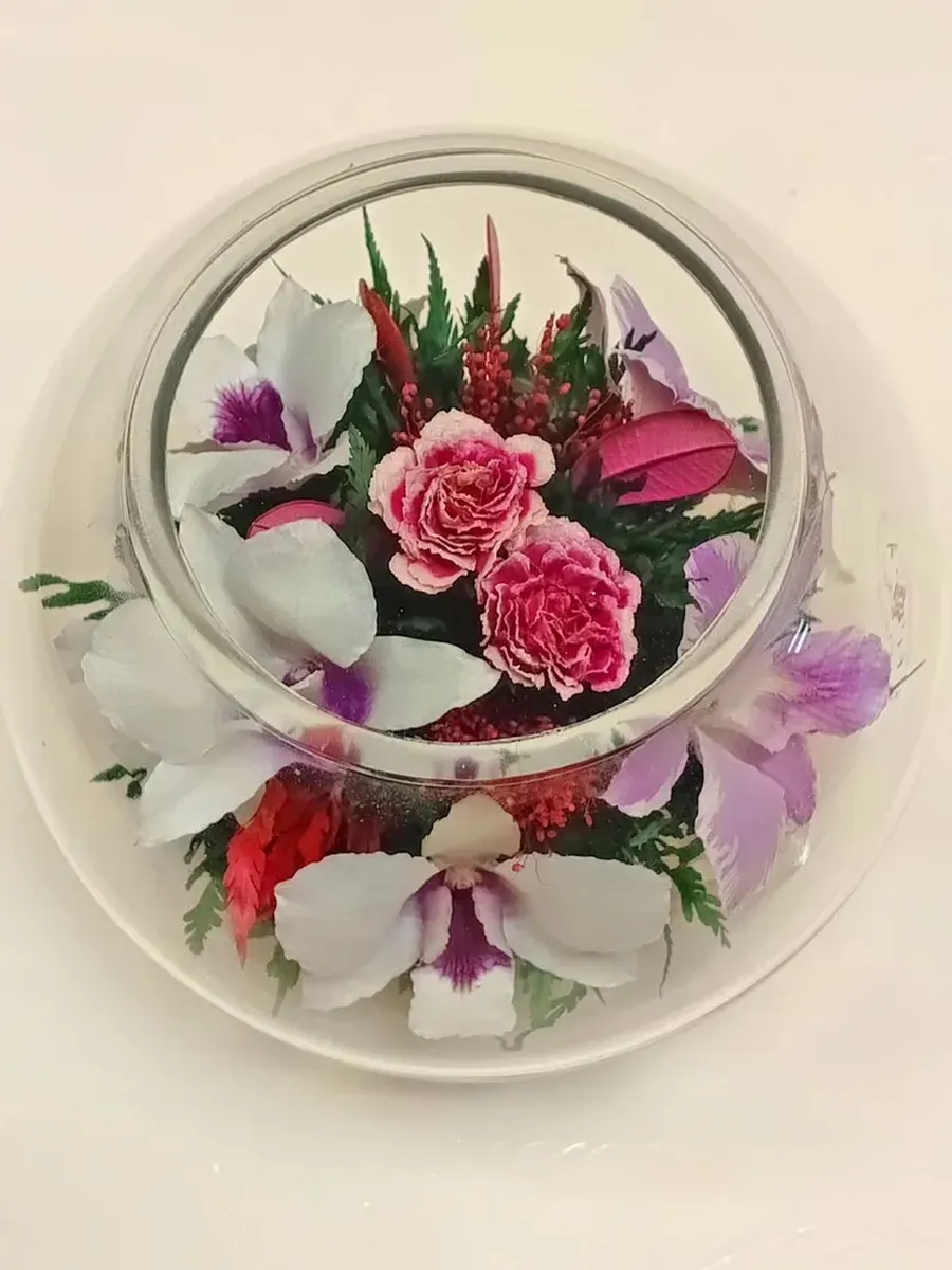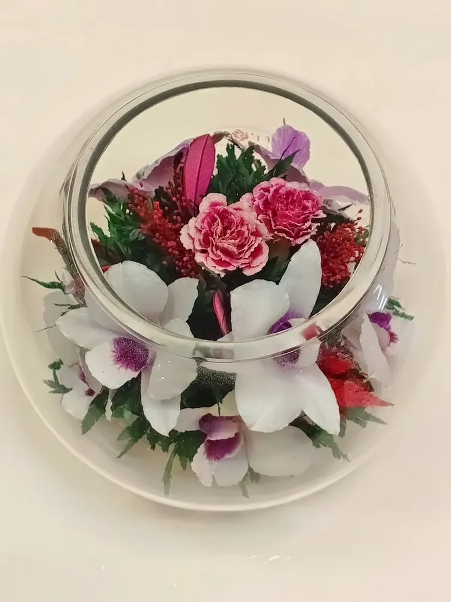 Цветы в стекле представляют собой великолепное сочетание композиций из натуральных цветов и замечательным образом выполненные элементы из стекла, имеющие декоративную форму. Натуральные невянущие цветы в стекле, такие как изящные и благородные розы, композиции из экзотических и таинственных орхидей, станут не просто замечательным настольным украшением, но способны преобразить любой интерьер квартиры или офиса. Стекло не только подчеркнет изящество цветов благодаря своей уникальной способности оптического увеличения, но и придаст всей композиции элегантный и утонченный вид. Цветы в стекле, способны хранить свои натуральные свойства несколько лет и станут самым лучшим подарком для Вашей...