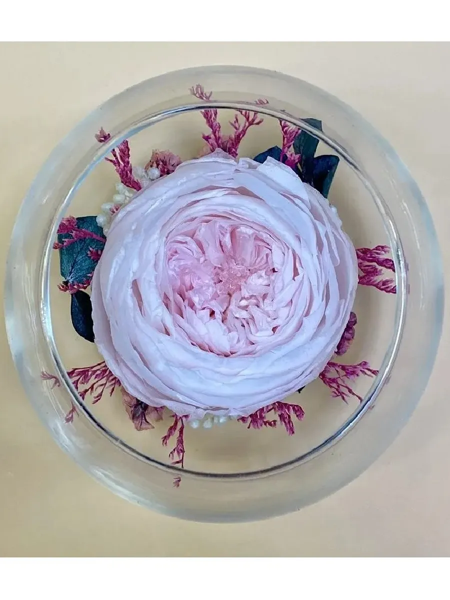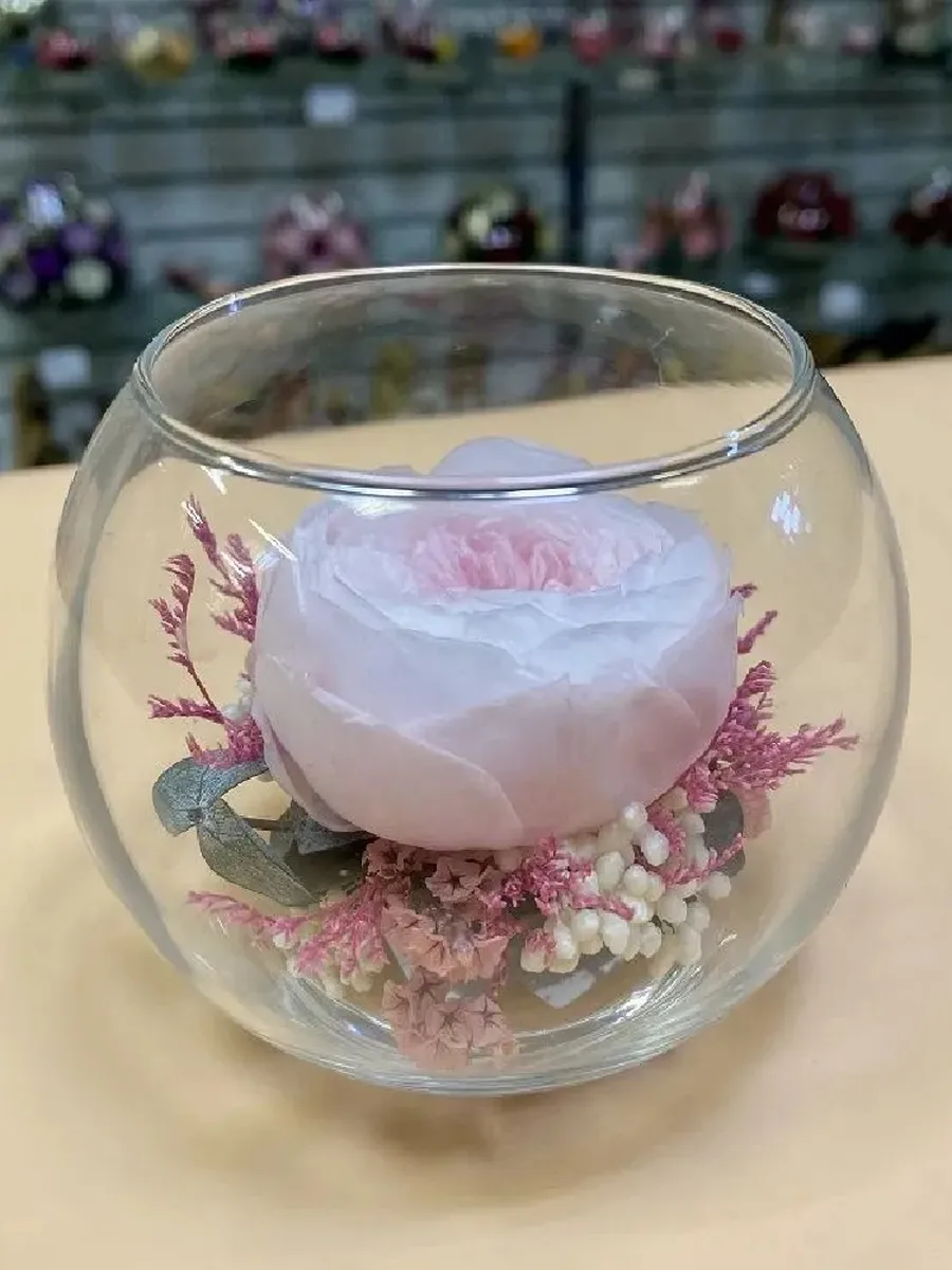 Композиции из натуральных природных цветов, в стеклянных герметичных вазах, вакуум