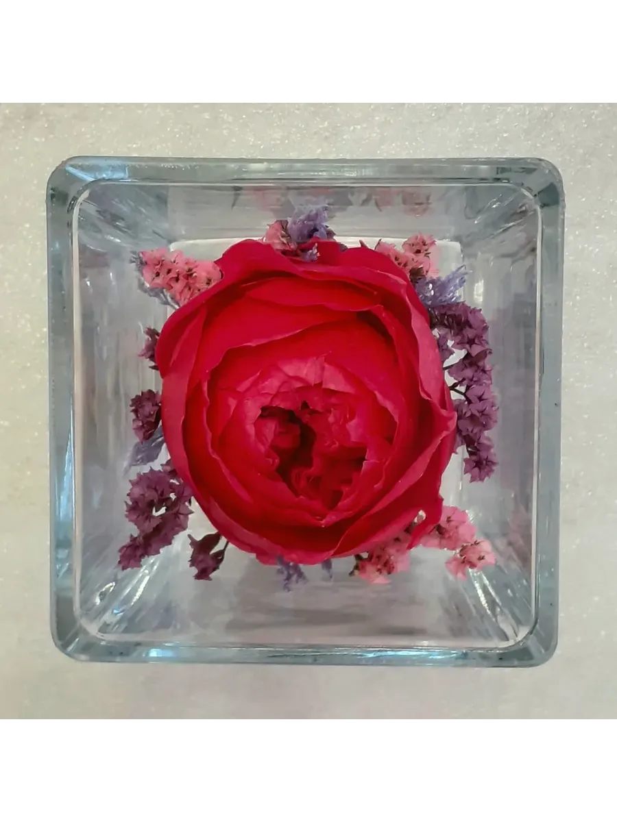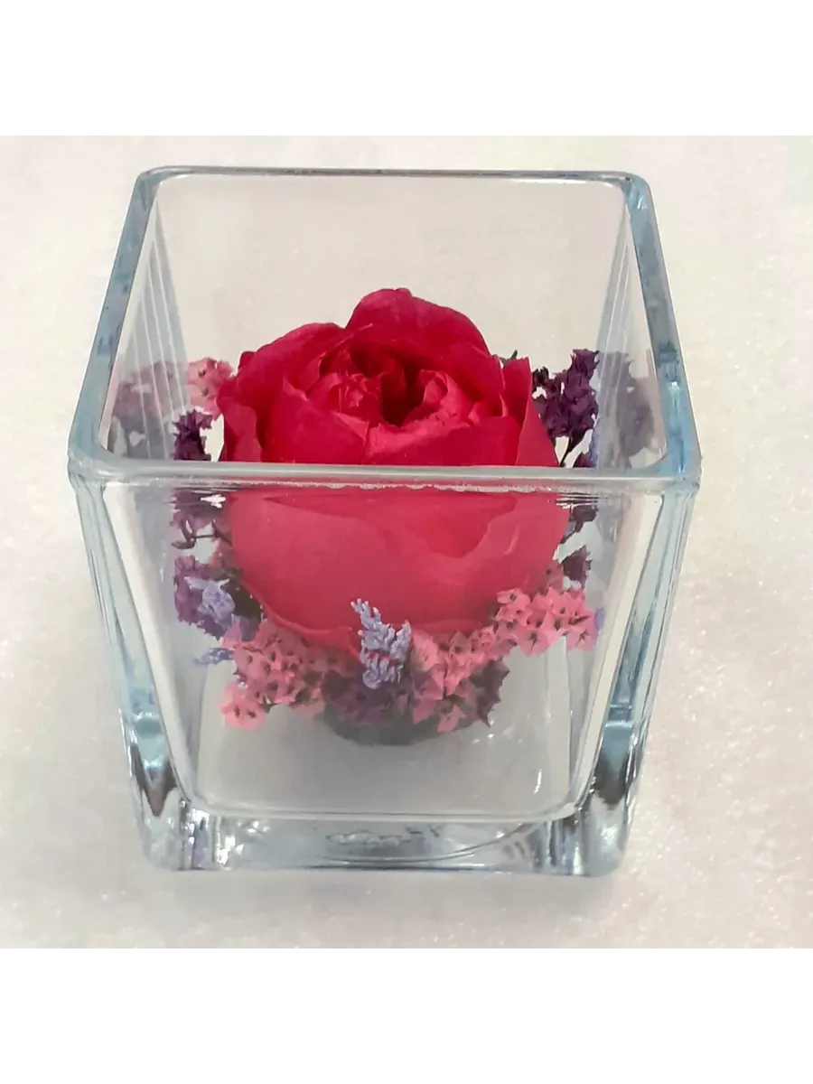 Композиции из натуральных природных цветов, в стеклянных герметичных вазах, вакуум.