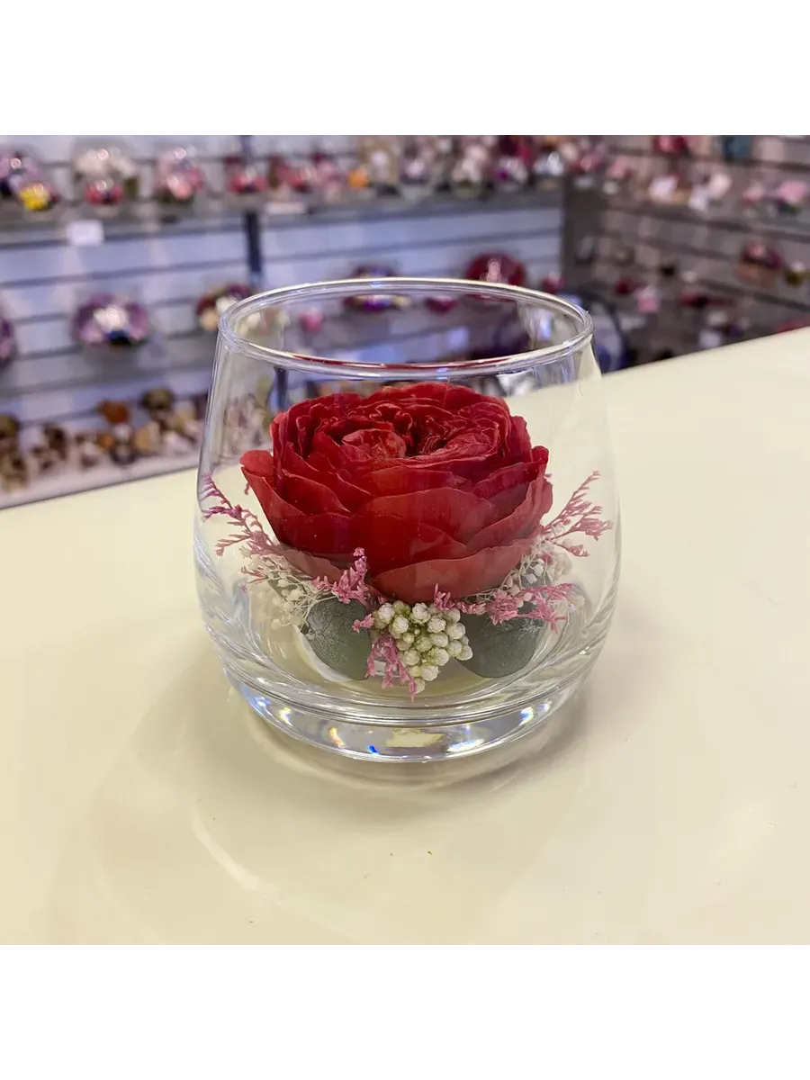 Композиции из натуральных природных цветов, в стеклянных герметичных вазах, вакуум.