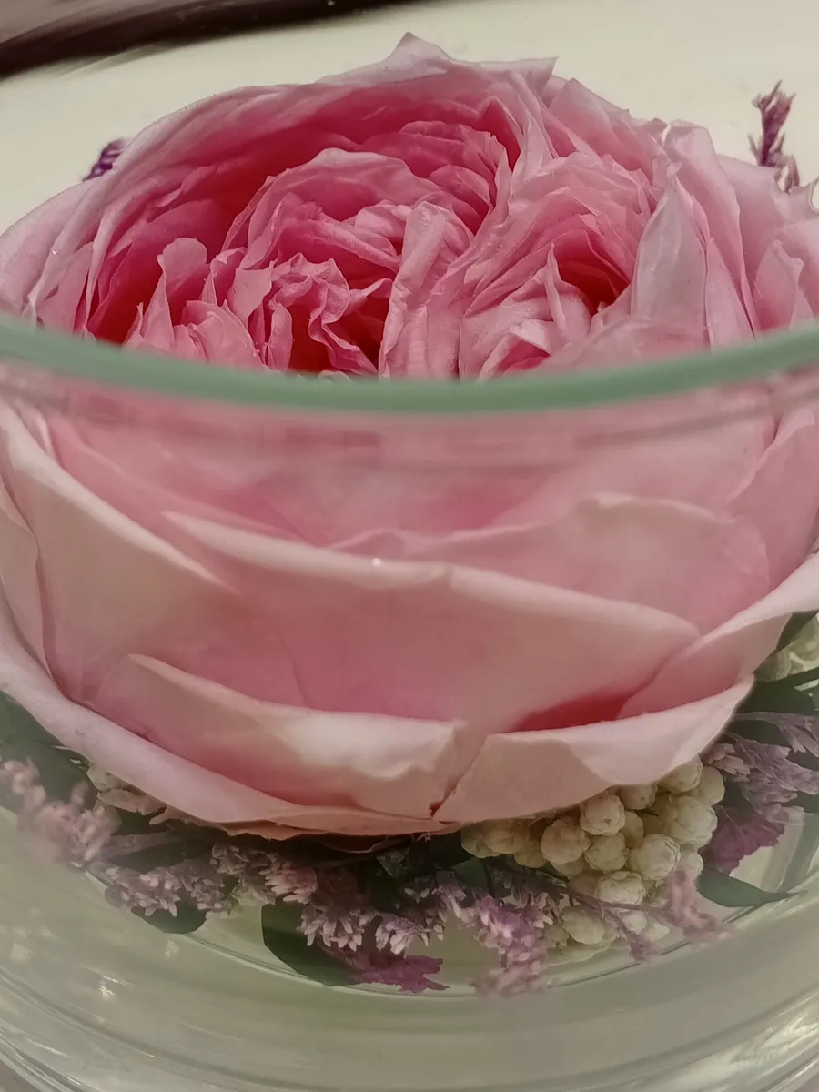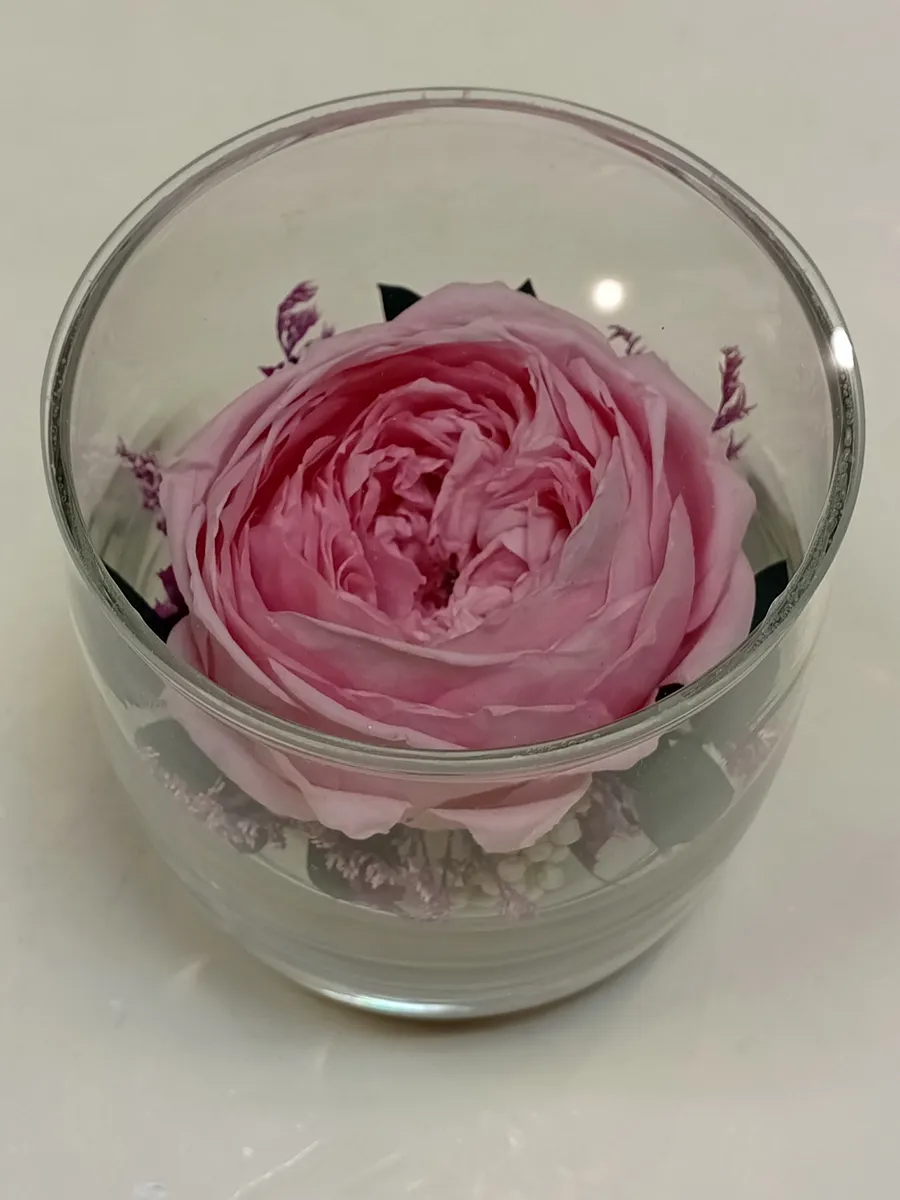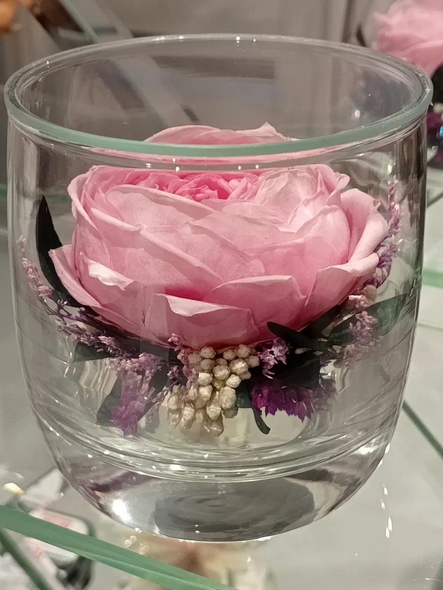 Композиции из натуральных природных цветов, в стеклянных герметичных вазах, вакуум.